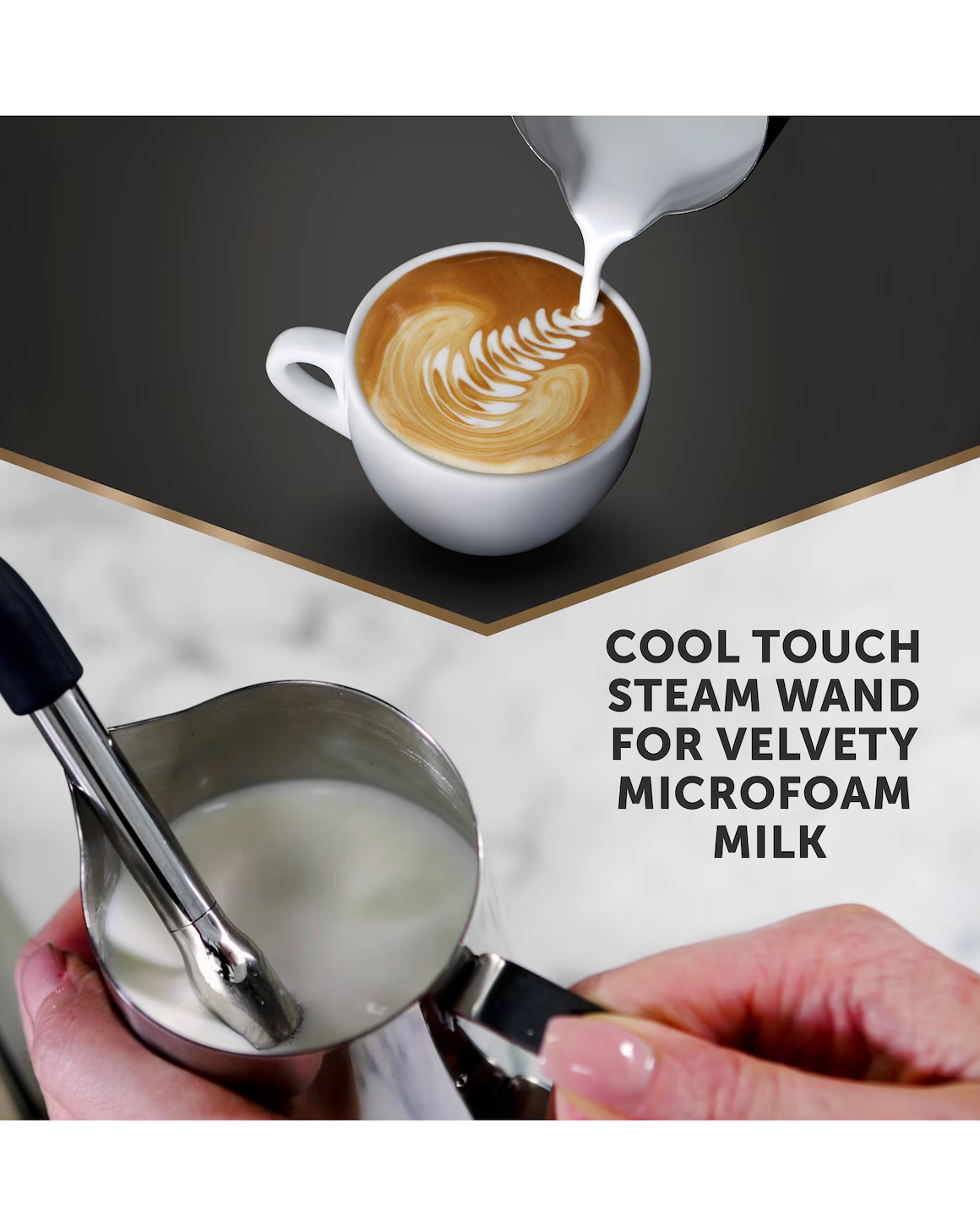 - Manual Steam Wand: Achieve perfect milk texture with the manual steam wand and adjustable temperature milk frother.