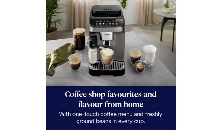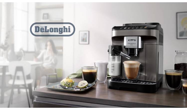 Discover the ultimate coffee experience with the De’Longhi Magnifica Evo, an embodiment of De’Longhi’s passion for innovation, authentic beverages, and sophisticated style. Crafted with a sleek titanium and black design, this machine delivers the perfect Italian espresso and a wide array of other coffee and milk-based delights. Indulge in the silky smooth, dense, and creamy milk froth, a signature of the exclusive LatteCrema System, ensuring every sip is a moment of pure bliss.